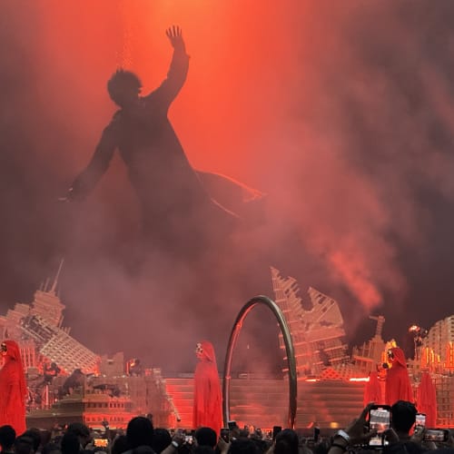 Anyways, this tour is still billed as the After Hours Til Dawn tour, in what feels like a victory lap of sorts for what The Weeknd has deemed to be a second trilogy with After Hours, Dawn FM, and now Hurry Up Tomorrow. Amidst speculation that this might be his last go of it as The Weeknd, it truly did feel like a celebration of everything he has accomplished from 2011 to 2025. The gleaming cityscape that loomed large over the stage on previous legs of the tour has crumbled to gold plated ruins, making way for a massive screen wih ultra high-definition live visuals, tracking his movements across the sprawling stages.